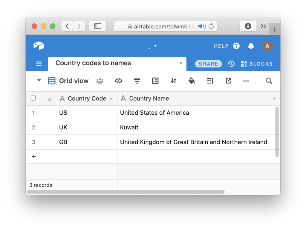 Convert country codes to country names. e.g. US to United States of America. Transform all records in bulk instead of doing it manually.