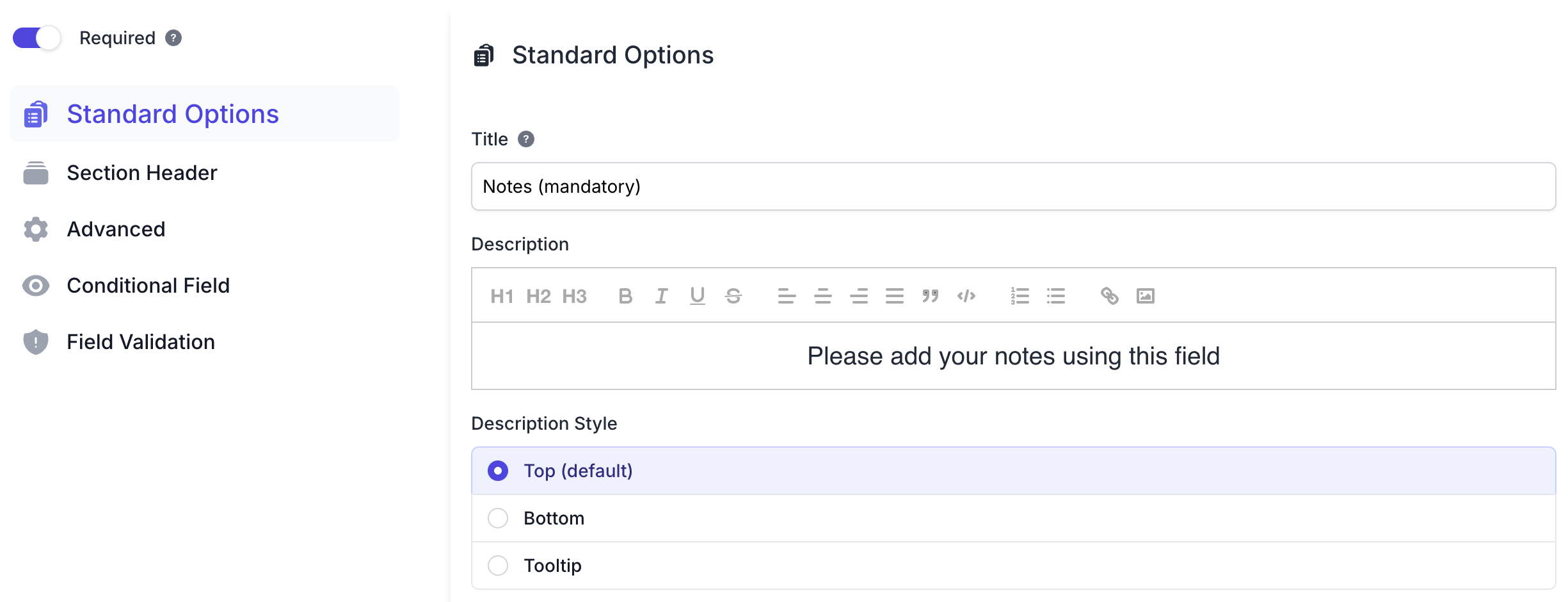 One of the features of the miniExtensions Form is the ability to mark fields as required to ensure data accuracy and completeness. This feature enforces mandatory input for critical fields, preventing incomplete submissions and improving the quality of your collected data.
