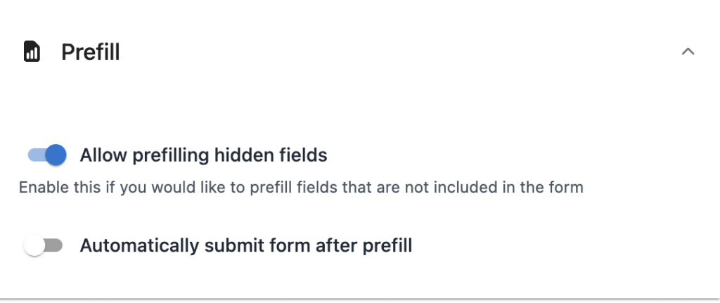 With miniExtensions form, you have the choice to allow prefilling any field, including hidden ones. You can use this feature to send out forms with some prefilled IDs, for instance, without visually showing them in the form. It works by using the prefill_fieldName=parameter