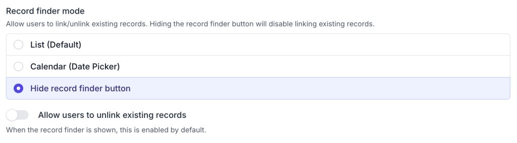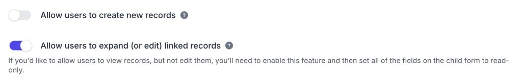 The miniExtensions Form features a read-only mode for Airtable fields that you do not want users to edit. For linked record fields, there are more granular options available. You can set the field itself to not allow linking and unlinking, as well as creating new Airtable records. However, you can still allow users to expand (and edit, if desired) the already linked records. Essentially, any combination of view and edit access can be achieved, which opens up just about any use case!